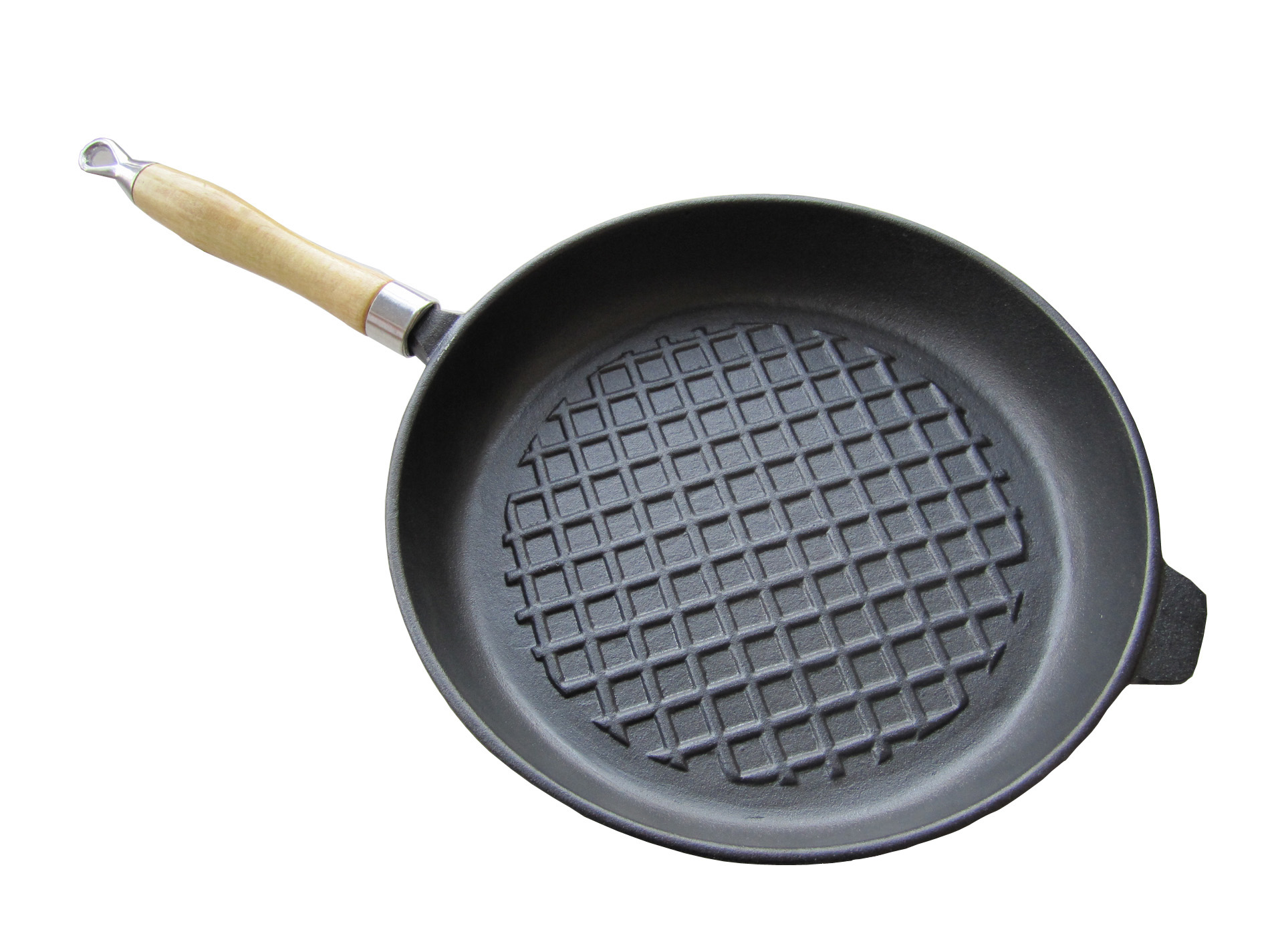Round Solid Wooden Handle Frypan